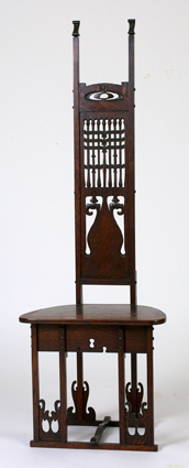 Rohlfs Chair Fine & rare oak hall chair by Charles Rolhfs,sgn. & dated w/ artist's logo 1902. Buffalo, NY. Masterfully carved & executed w/ original maker's wooden tag.