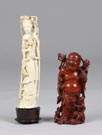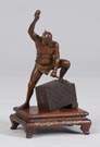Patinated Bronze Stone Cutter on Teakwood Base w/Gold Decoration |
