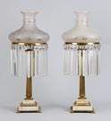 Pair of Sinumbra Lamps w/Marble & Brass Bases & Engraved Shades |