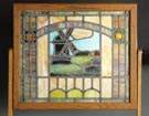 Leaded Glass Window w/Windmill