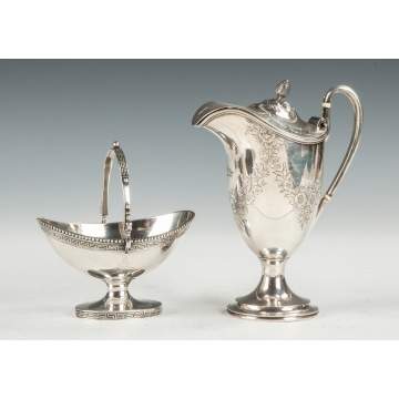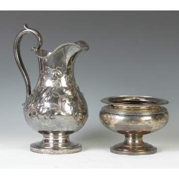 Jones Ball & Poor, Boston, Coin Silver Pitcher & Sterling Footed Dish