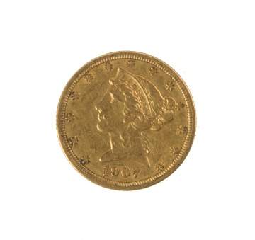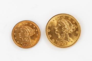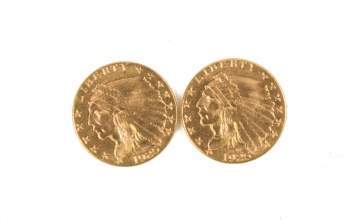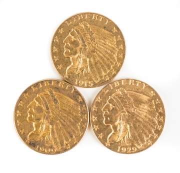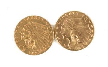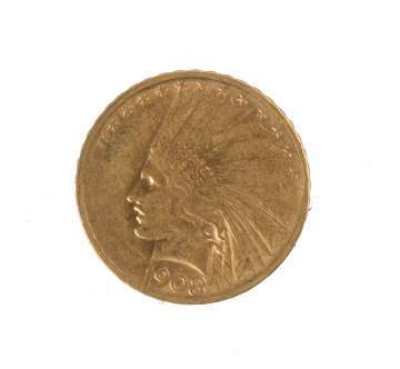 1909 & 1910 Five Dollar Indian Head Gold Coins