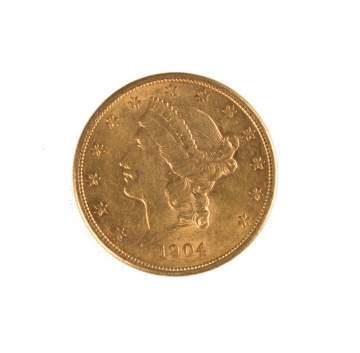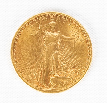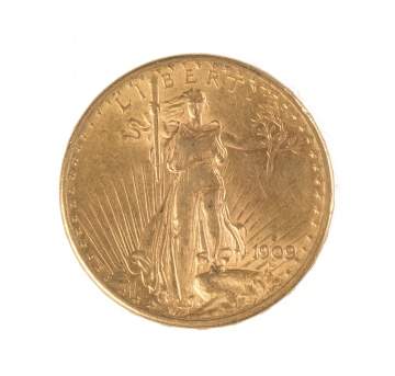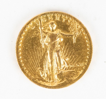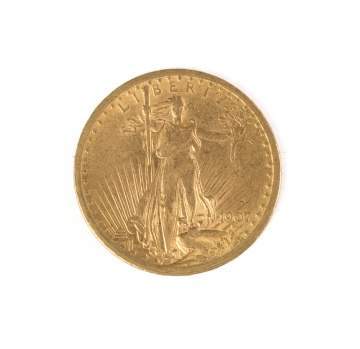 Fine $20 Gold High Relief St Gaudens Coin. Graded MS63+.
