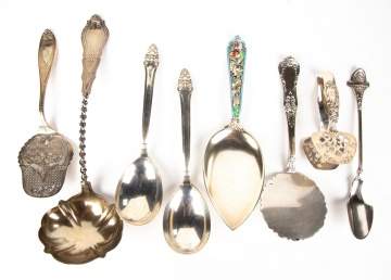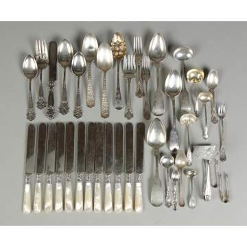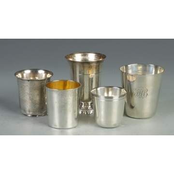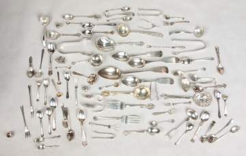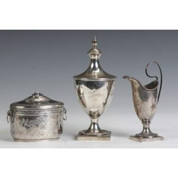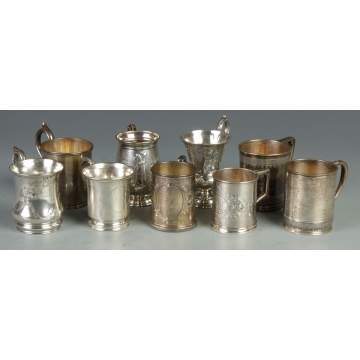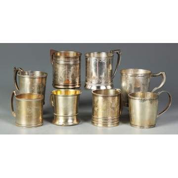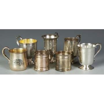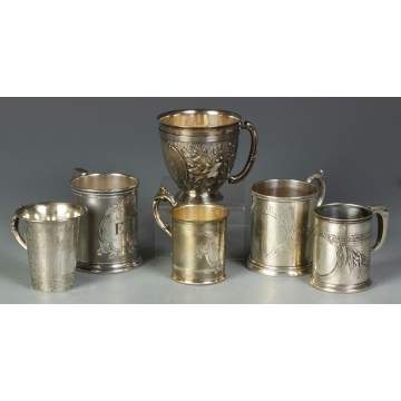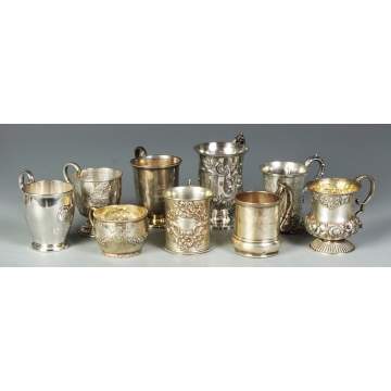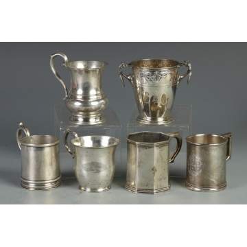 Group of Sterling & Coin Silver Cups, Creamers, Talc Shaker, etc.