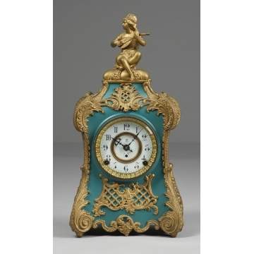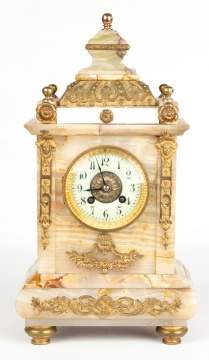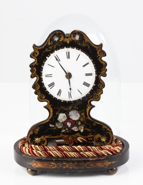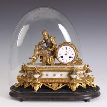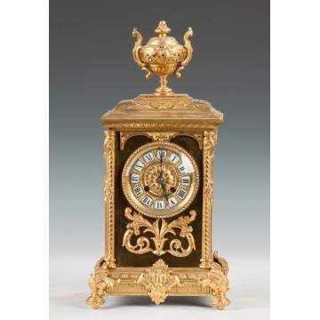 French Patinated Gilt Metal & Onyx Shelf Clock w/Glass Dome
