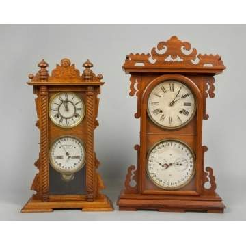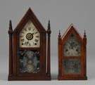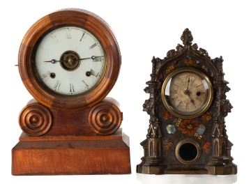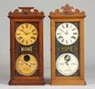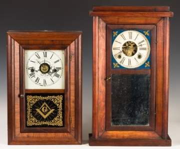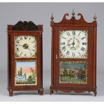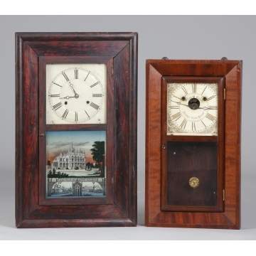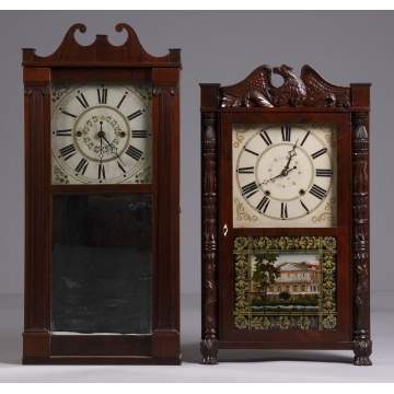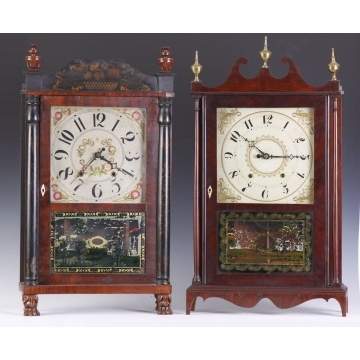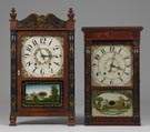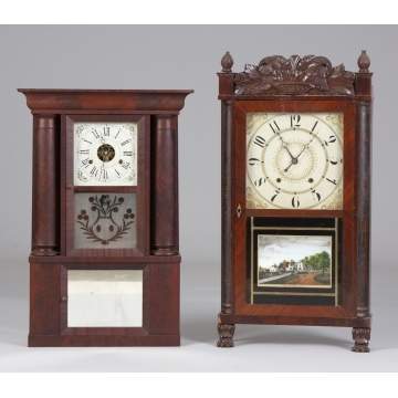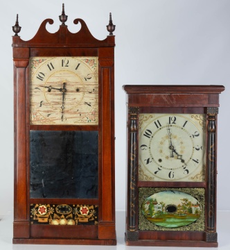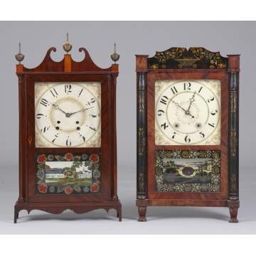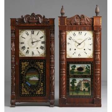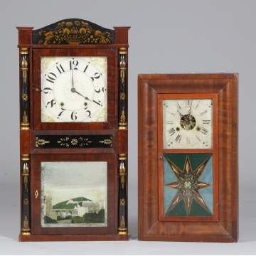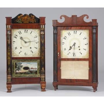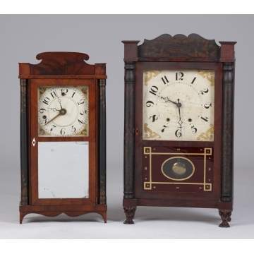 L - Ephriam Downs Shelf Clock. R - Mark Leavenworth & Co. Shelf Clock.