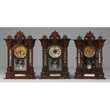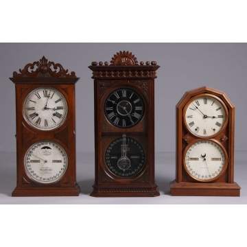 L - Ithaca Farmer Model #10 Shelf Clock, C - Ithaca Kildare #13 Shelf Clock, R - Seth Thomas #5 Parlor Calendar