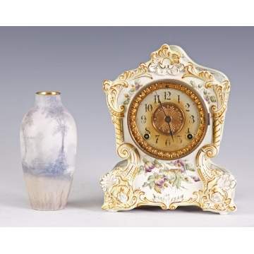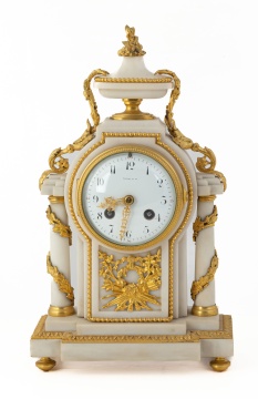 L - Orin Hart Transitional Reeded Column & Scroll, R - Jerome & Darrow Shelf Clock.