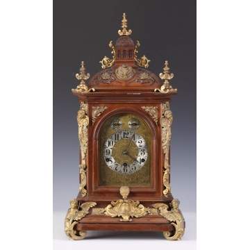 German Carved Mahogany Shelf Clock w/Brass Mounts