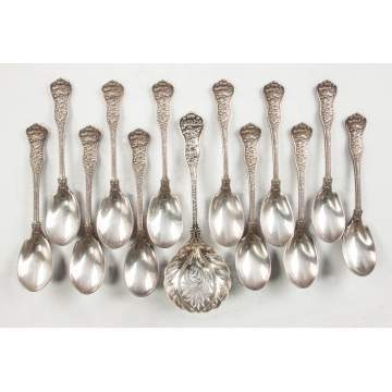 173 Eight Coin Silver Spoons and Twelve Demitasse Spoons Eight Coin Silver Spoons and Twelve Demitasse Spoons