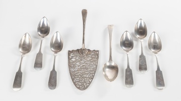 230 Hester Bateman George III Silver Cake Server & New York Coin Silver Spoons Hester Bateman George III Silver Cake Server & New York Coin Silver Spoons