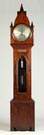 | Mahogany case, old patina. Silvered brass dial. Cut glass and nickel plated pendulum. Nickel plated weight and pulley assembly. 8 day time only movement. Plaque reads: Edward F. Terry, 1857-1924, Builder of Bridges. Designer & Maker of this Clock. |