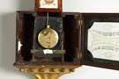 | Mahogany case with fine herringbone inlay, old finish. Original iron dial with some original paint & touch up. Old reverse painted tablets. 8 day time only weight driven brass movement. |