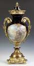 | Lot #: 458 Sevres Style French Porcelain & Gilt Brass Covered Urn |