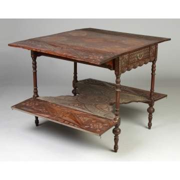 | Lot #: 564 Whimsically Carved Drop Leaf Table w/Drawers |