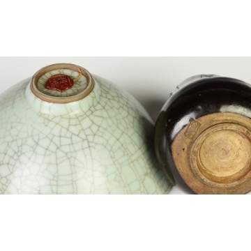 Celadon Bowl w/Chinese Wax Seal tog. w/Chinese Pottery Vase