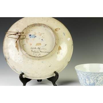 | Moroccan decorated charger, glaze imperfections, Dia. 16 1/2"; Porcelain decorated bowl, Ht. 5" Dia. 8 1/2". |