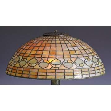 | Shade & base sgn. Tiffany Studios New York. Shade #1488, base # 6951. Approx. 6 cracked panels. Ht. 23 1/2" Shade dia. 18" Est. $10,000-$15,000 |