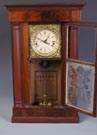 | Model C1, c. 1844. Mahogany case with old finish. Original paper dial, separated through the center.Embossed brass bezel. Original lyre & flower etched glass tablet. 3 ball brass torsion pendulum movement. Good clean label. Ht. 22" Est. $3,000-$5,000 |