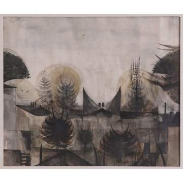 | Lot #: 131 Alan Reynolds (English, 1926- ) "The Village June 1952" |