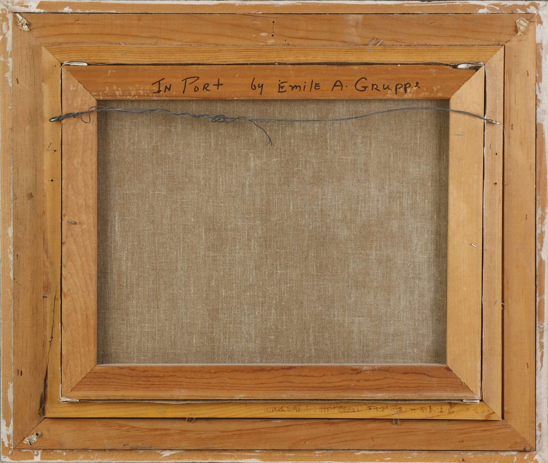 | Sgn. Emile A. Gruppe lower right. O/C. Purchased originally from Emile A. Gruppe Gallery, 1977. "In Port" |