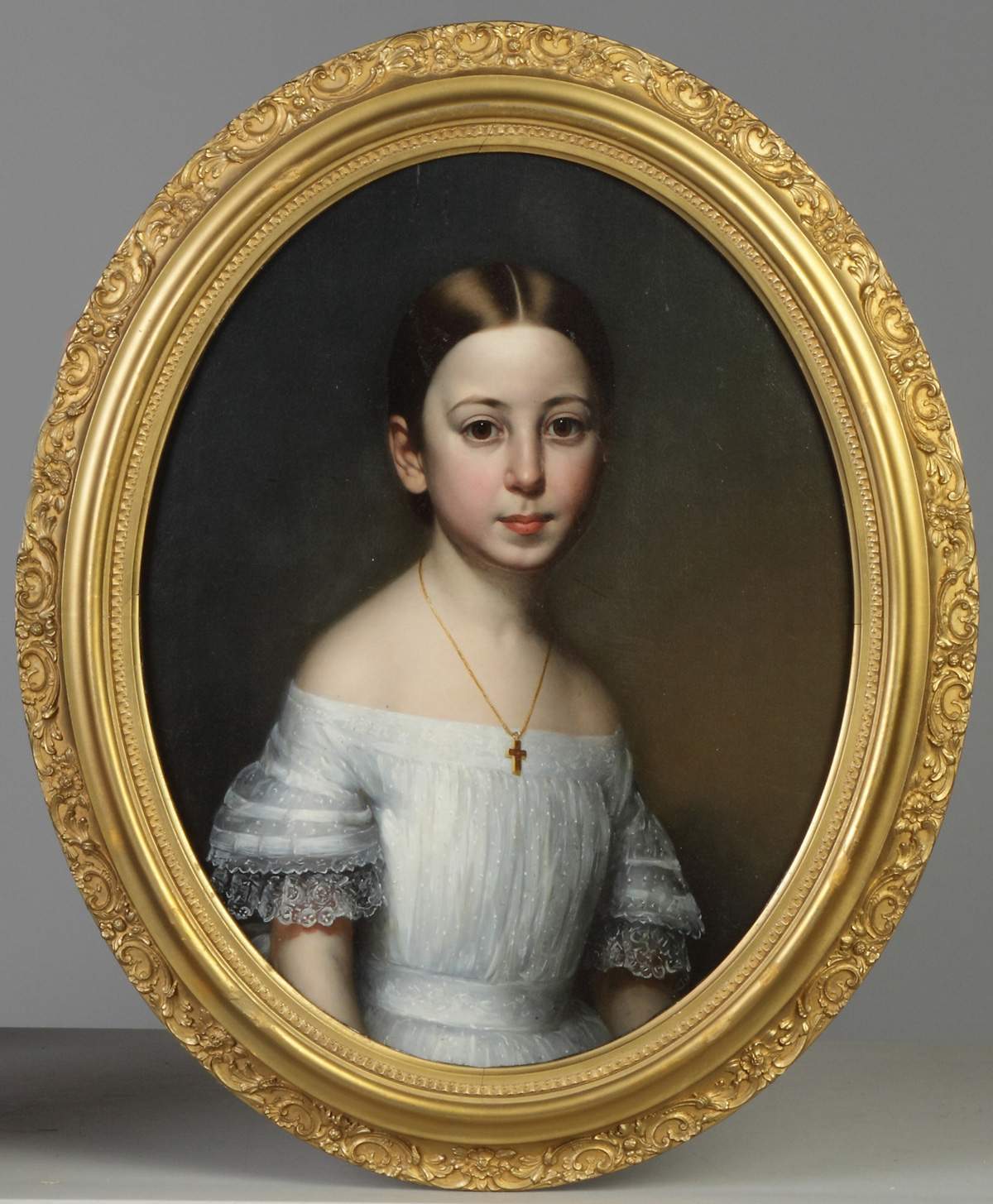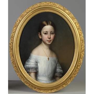 | Lot #: 22 Joseph Allen Haskell (American, 1808-1894) Portrait of a young girl with lace dress |