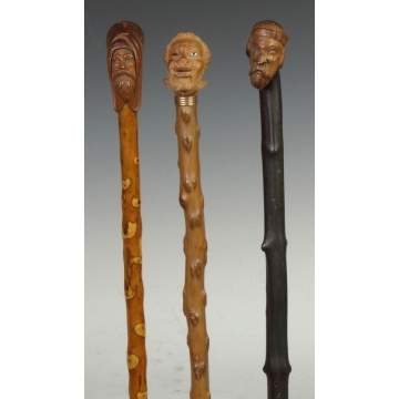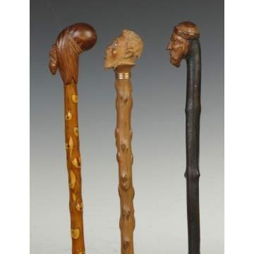 | Lot #: 289 Three Carved Wood Canes w/Faces |