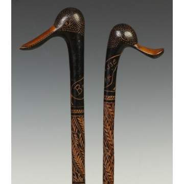 | Lot #: 296 Two Carved Wood Canes w/Duck Handles |