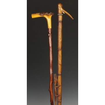 | Lot #: 309 Two Carved Wood Canes w/Alligators & Elephant Handle |