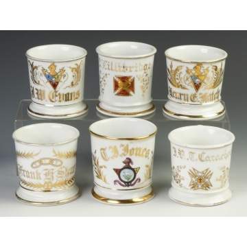 | Lot #: 379 Six Vintage Fraternity/ Lodge Occupational Shaving Mugs |