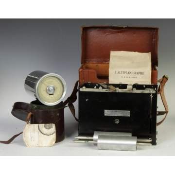 | Paulin System Instruments, Sweden, Leveling Aneroid, original round leather case. D.S. de Lavaud L’Altiplanigraphe Altimetrie in original leather bag. |