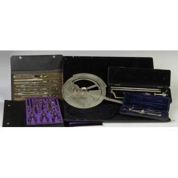 | Compasses, etc. Tog. w/instruments not pictured. Incl.: Original precision Lotter; EO Richter & Co.; LS Starrett Co; Qty. new old stock pencils. |