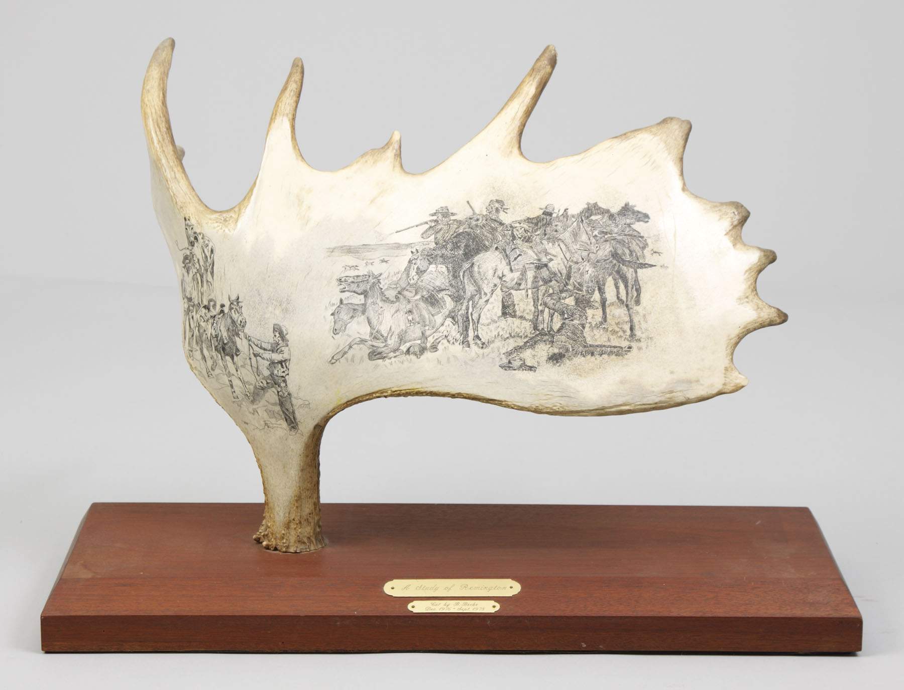 | "A Study of Remington" by B. Beebe, Dec. 1976 - Sept. 1978. Some chips. Ht. 16" W 20" Est. $300-$500 |