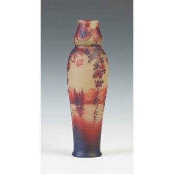 | Lot #: 339 DeVez Cameo Vase with Sailing Ships in Lake & Mountain Scene |
