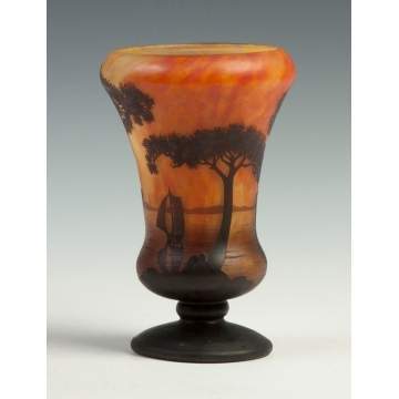 | Lot #: 361 Daum Nancy Cameo Vase with Lake & Sunset Scene |