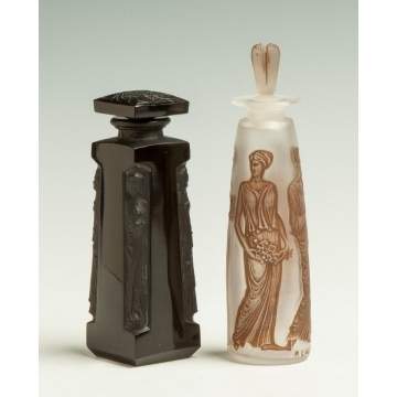 | Early 20th cent. Sgn. Lalique in raised letters. Floral stopper & art Nouveau women on sides. |