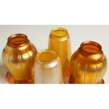 | Lot #: 485 Pair of Quezal Gold Iridescent Bell Shaped Shades |