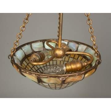 | Lot #: 506 Pair of Unusual Tiffany Studios NY Turtleback Leaded Glass Hanging Domes |