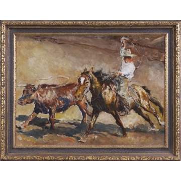 Pal Fried (Hungarian American 1893-1976) Bull roping scene