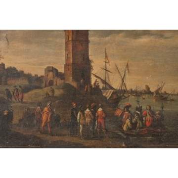 | Lot #: 637 18th century Painting of Boats in Harbor |