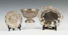 | L to R: Bowl, repousse work, Ht. 1 1/2" Dia. 7". Compote, repousse, Ht. 5" Dia. 8". 19 ozt. |