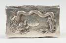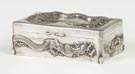 | Lot #: 215 Chinese Export Silver Jewelry Box with Relief Raised Dragons |