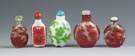 | Lot #: 270 Five Chinese Overlay Peking Glass Snuff Bottles |