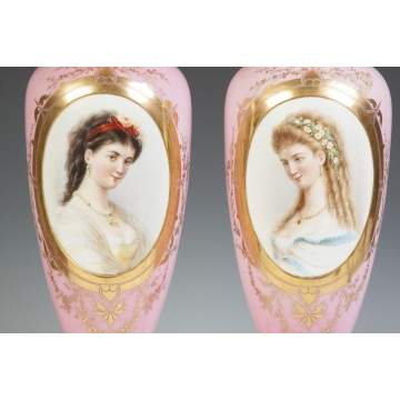| Lot #: 400 Pair of Cased Glass Portrait Vases |