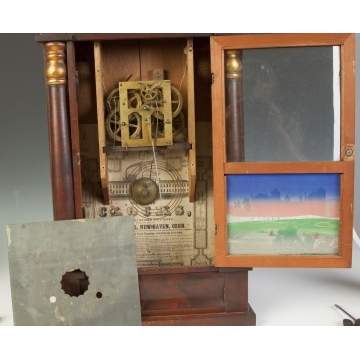 | Mahogany case, original finish. Grained & gilded columns. Original painted metal dial. Original reverse painted tablet. 30 hour time and strike weight driven brass movement. |