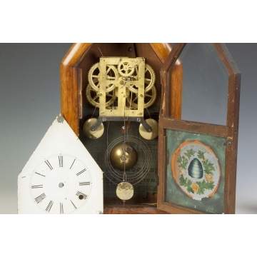 | Rosewood case. Original painted metal dial. Original reverse painted tablet: "By Industry We Thrive." 30 hour time & strike spring driven fusee movement. |