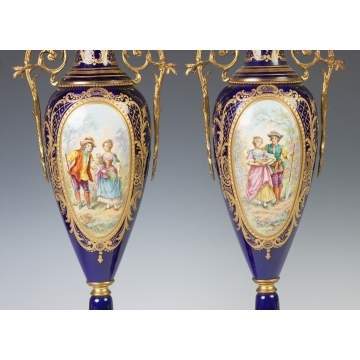 Pair of Sevres Style Hand Painted Urns