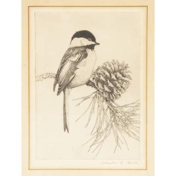 Charles Emile Heil (MA, 1870-1950), Watercolor & etching of birds