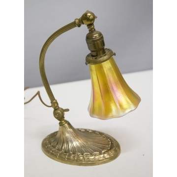 | Lot #: 413A Gilded Brass Desk Lamp with Steuben Aurene Shade |