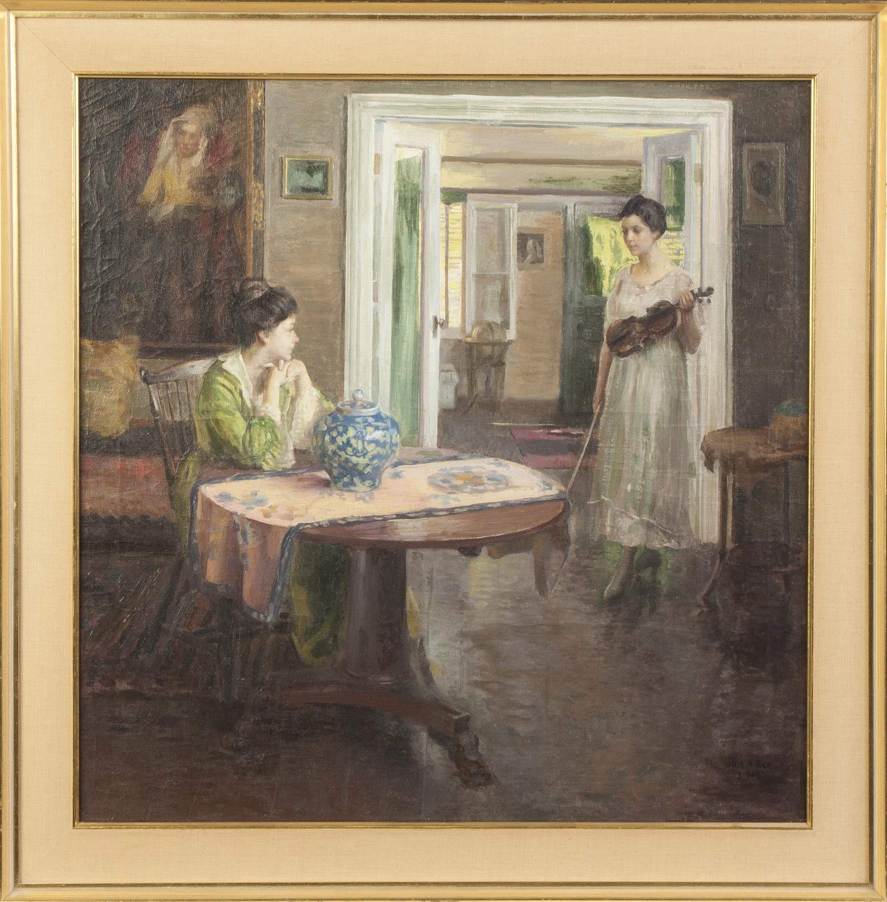 | Lot #: 439 John Hubbard Rich (American, 1876-1954) Interior scene with two young ladies |